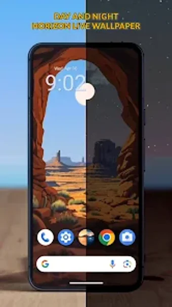 Day Night Horizon Wallpaper är en gratis app för Android som erbjuder en dynamisk och levande bakgrund för din telefon. Denna app skapar en realistisk upplevelse av dygnets cykel, där användaren kan se hur solen går upp, rör sig över himlen och går ner i en färgsprakande solnedgång. Som natten faller, förändras bakgrunden till en lugn scen med månsken och glittrande stjärnor, vilket ger ett harmoniskt intryck på skärmen. Denna app är perfekt för dem som söker en vacker och lugnande visuell upplevelse på sin enhet.